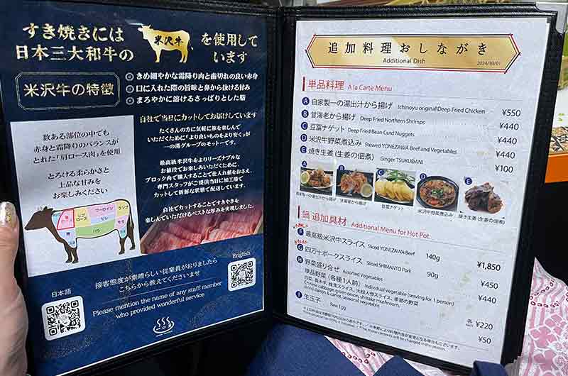 有日本三大和牛之一「米澤牛」的壽喜燒