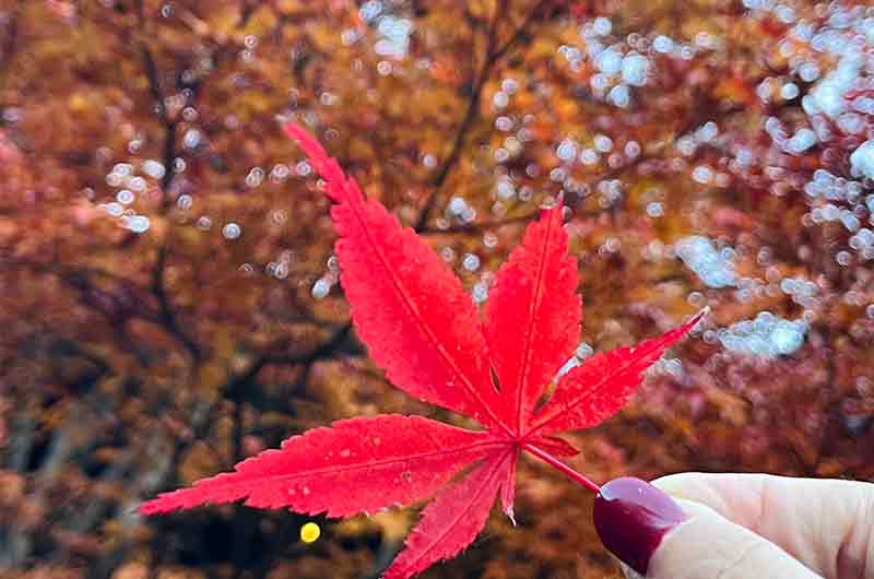 地上找到一片超紅的楓葉