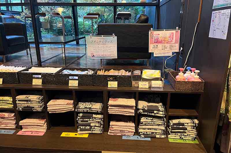 飯店大廳也有提供盥洗用品和各種尺寸的浴衣可以自行取用
