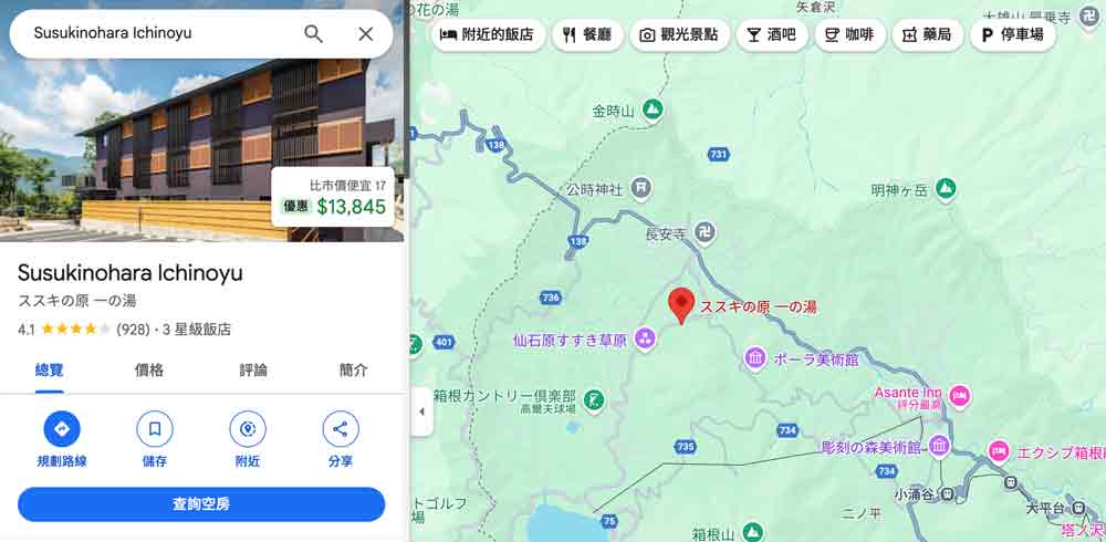 - 距離箱根湯本車站比較遠,沒有自駕可能比較難到